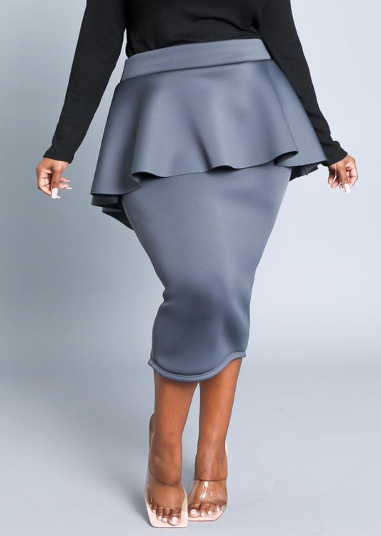 HI Curvy Plus Size Women Peplum Midi Pencil Skirt