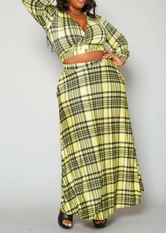 Hi Curvy Plus Size Women Tartan Plaid Two Piece Set