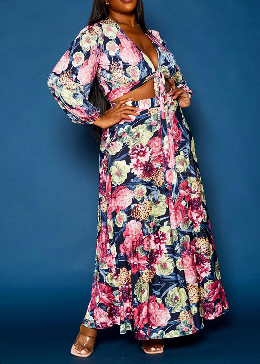 Hi Curvy Plus Size Women Floral Top & Maxi Skirt Set