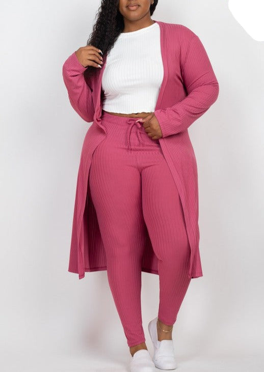 Plus Size Ribbed Long Cardigan & Leggings Set