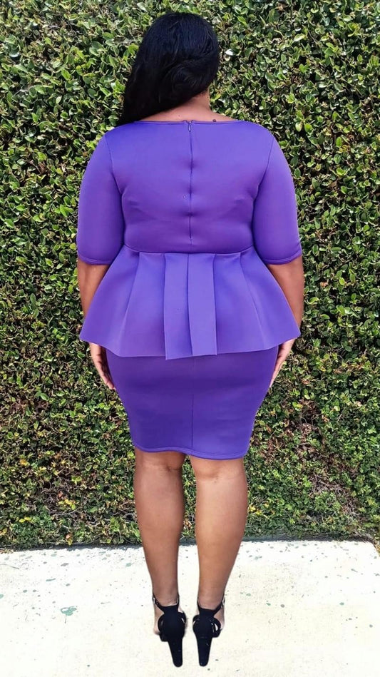 Plus Size Scuba Round Neck Ruff Hem Peplum Knee Dress