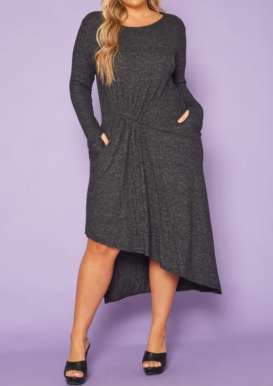 HI CURVY Plus Size Asymmetric Long Sleeve Midi Dress