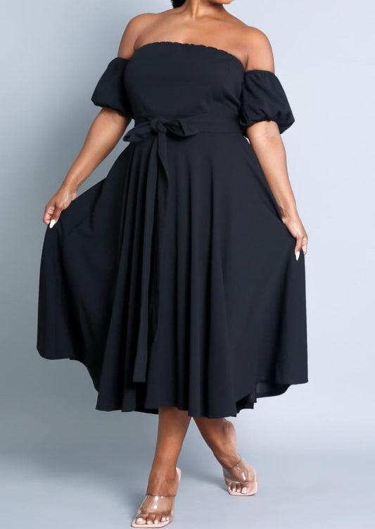 Hi Curvy Plus Size Attached Sleeves Tube Fit and Flare Dress