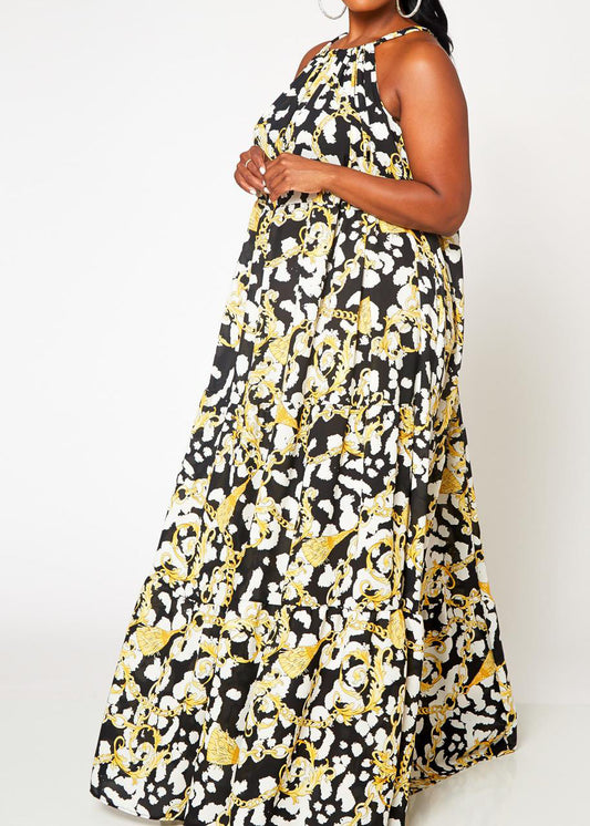 Hi Curvy Plus Size Gold Chain Halter Neck Maxi Dress