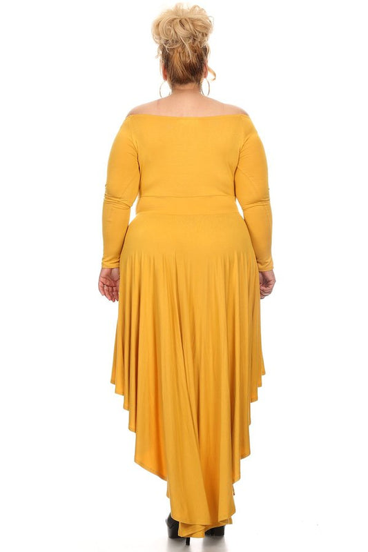 Hi Curvy Plus Size Women Off Shoulder Hi-Lo Tie Solid Midi Dress