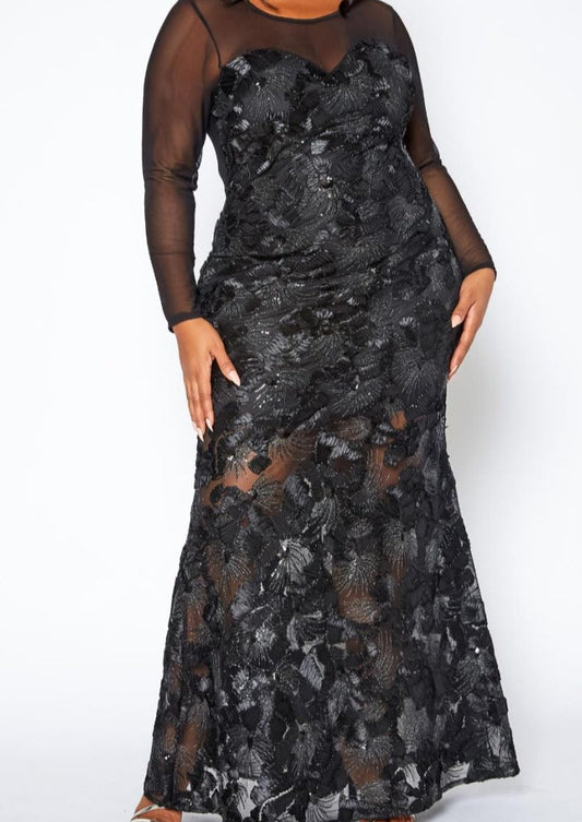Hi Curvy Plus Size Women Elegant Patterned Lace Mermaid Hem Gown