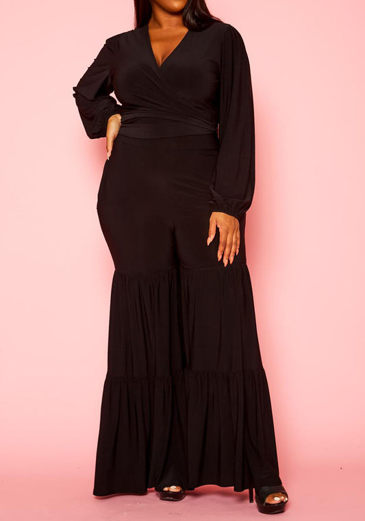 HI Curvy Plus Size Women Wrap Crop Top & Bell Flare Pants