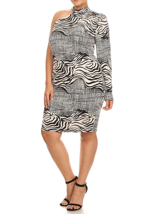 Hi Curvy Plus Size Women Zebra Print One Sleeve Mini Dress