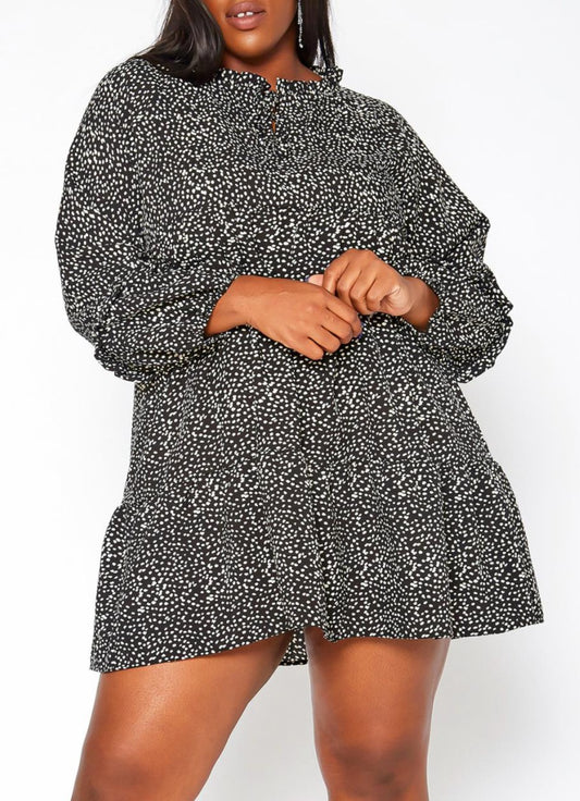 Hi Curvy Plus Size Women Dotted Print Flare Mini Dress
