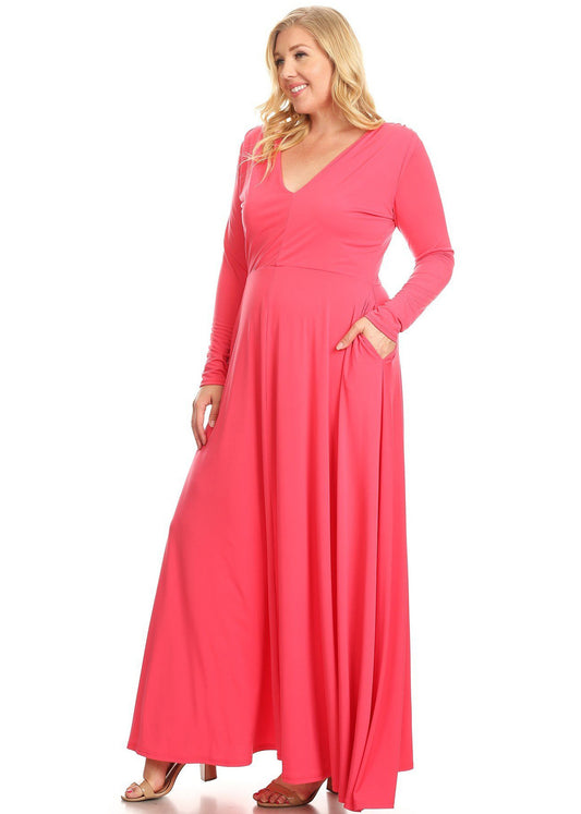 Plus Size Long Sleeves V-Neck Flare Maxi Dress