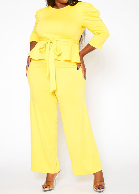 Hi Curvy Plus Size Asymmetric Peplum Top and Pants Set