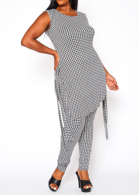 Hi curvy Plus Size Women Houndstooth Print Sleeveless Two Piece Set