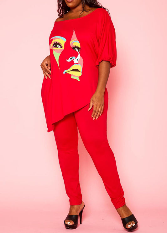 Hi Curvy Plus Size Women Graphic Print Two Piece Set