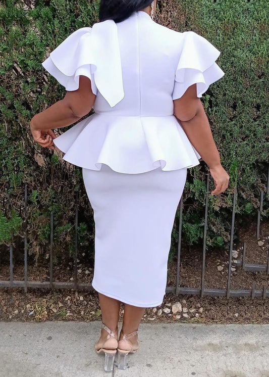 Hi Curvy Plus Size Women Ruffle Hem Peplum Blouse and Skirt Set