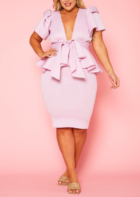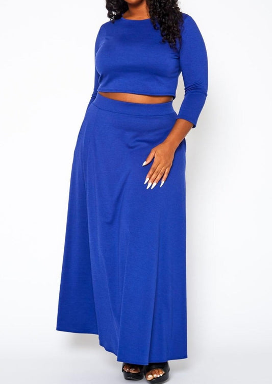 Hi Curvy Plus Size Women Wrap Blouse & Flare Skirt Sets