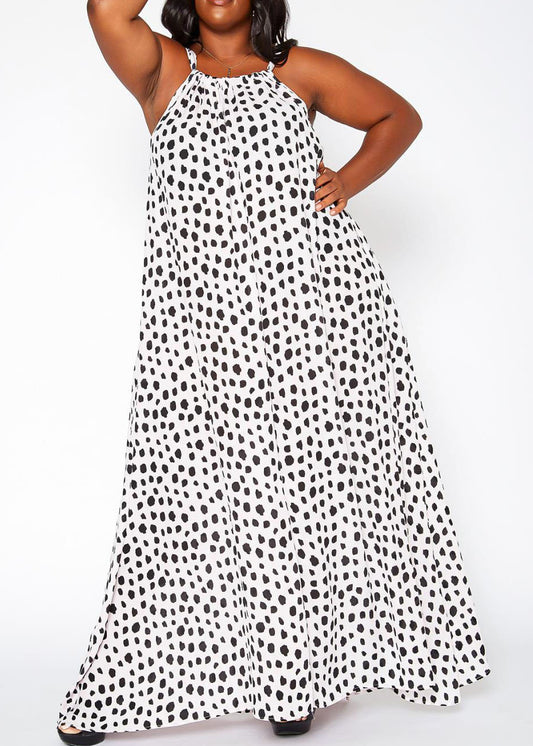 Hi Curvy Plus Size Women Dotted Print Maxi Flare Dress
