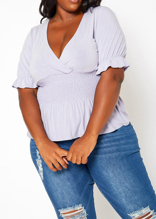 Hi Curvy Plus Size Waffle Knit V Neck Top