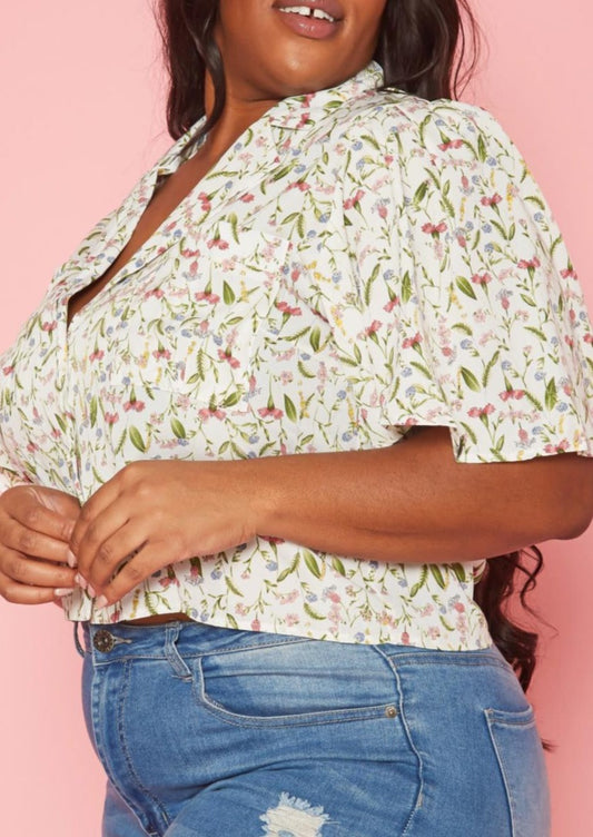 Hi Curvy Plus Size Women Floral Pattern Collar Neck Shirt
