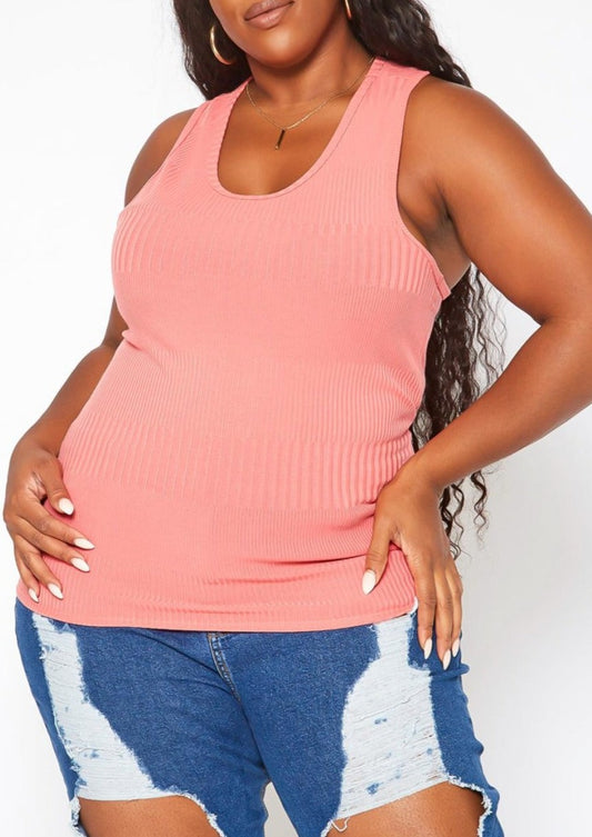 HI CURVY Plus Size Basic Ribbed Scoop Neck Tank Top