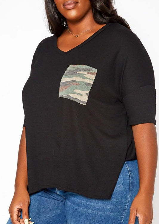 Hi Curvy Plus Size Camo Pocket Hem T Shirt