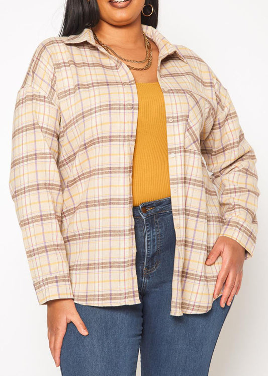 Hi Curvy Plus Size Women Plaid Print Collar Shacket Long Sleeves