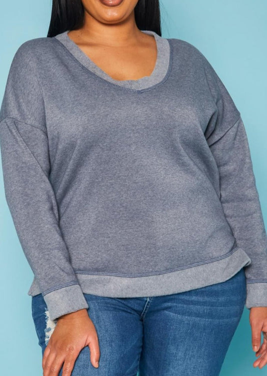 HI Curvy Plus Size Casual V Neck Long Sleeve Top