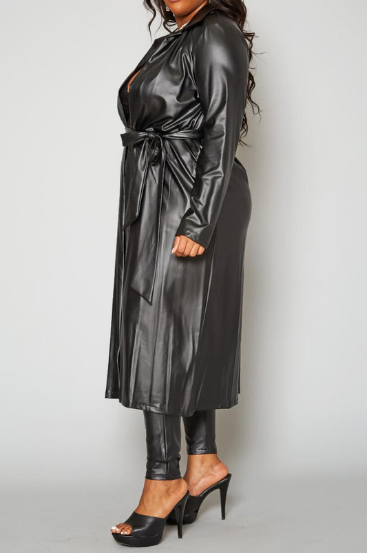 Hi Curvy Plus Size Women PU Leather Longline Jacket & Legging Set