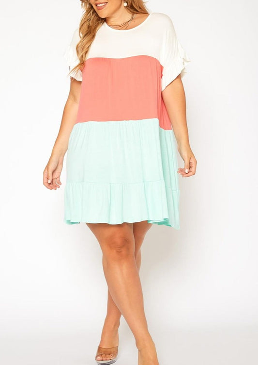 Hi Curvy Plus Size Color Block Flare Mini Dress
