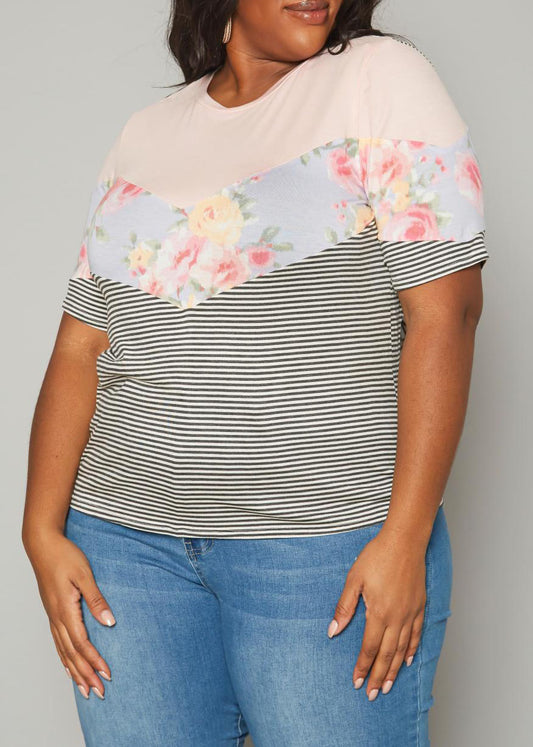 Hi Curvy Plus Size Women Multi Print Short Sleeve Shirts