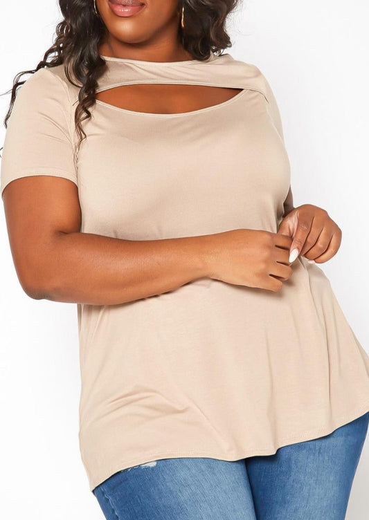 Hi Curvy Plus Size Women Cut Out Front T-Shirts