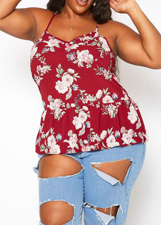 Hi Curvy Plus Size Women Floral Print V Neck Cami Top