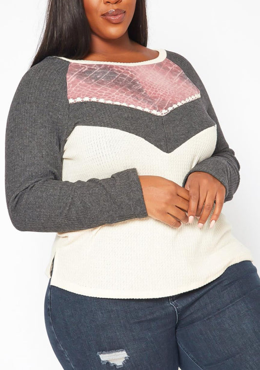 HI Curvy Plus Size Women Snakeskin Splice Knit Sweater