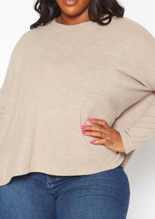 Hi Curvy Plus Size Casual Knit Relaxed Long Sleeve Shirt