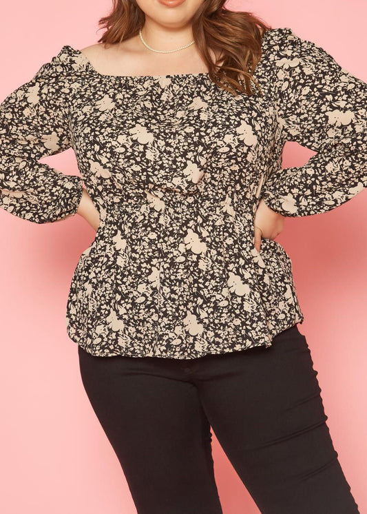 HI Curvy Plus Size Women Vintage Floral Print Off Shoulder Blouse