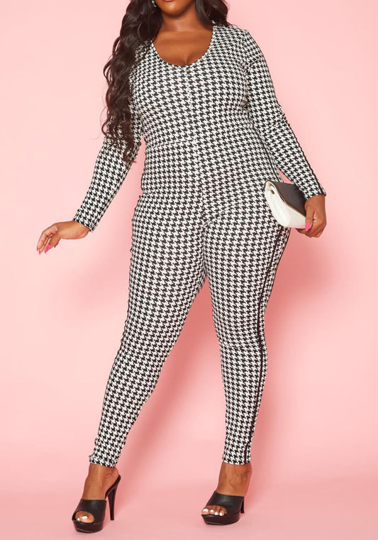Hi Curvy Plus Size Women Hound tooth Plaid Jumpsuit