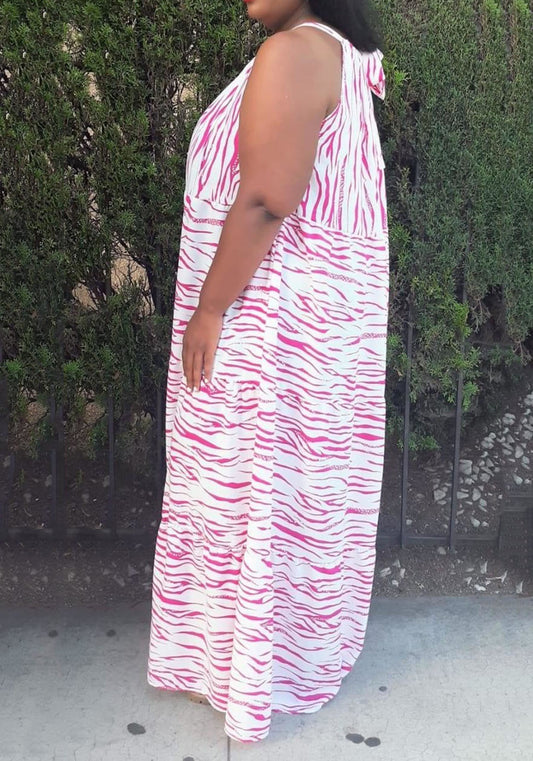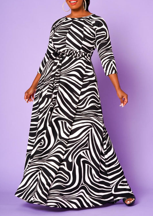 Hi Curvy Plus Size Women Zebra Print Flare Maxi Dress