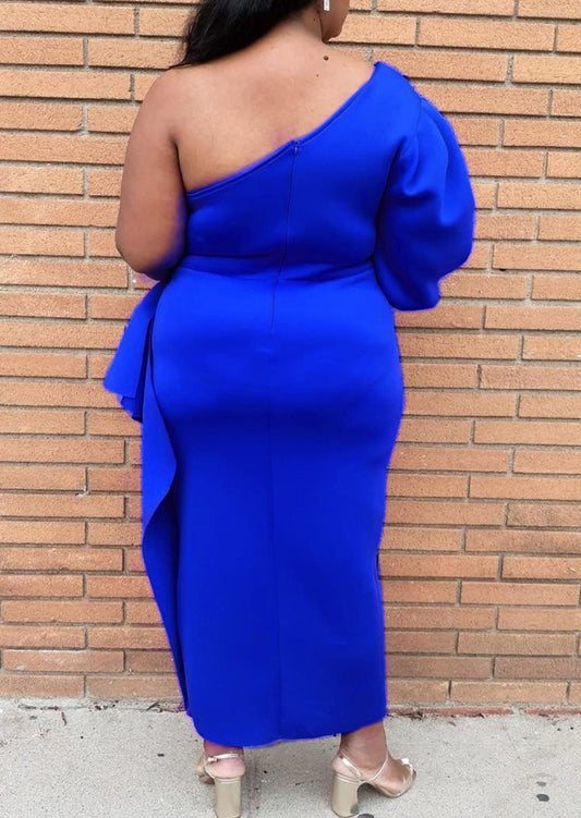 Hi Curvy Plus Size Women One Sleeve Drape Front Gown
