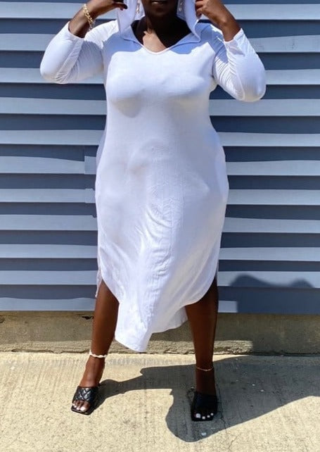 Hi Curvy Plus Size Women Curved Hem Hooded Midi Dress