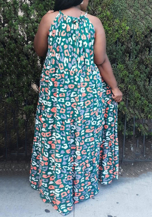 Hi Curvy Plus Size Women Halter Neck Flowy Maxi Dress