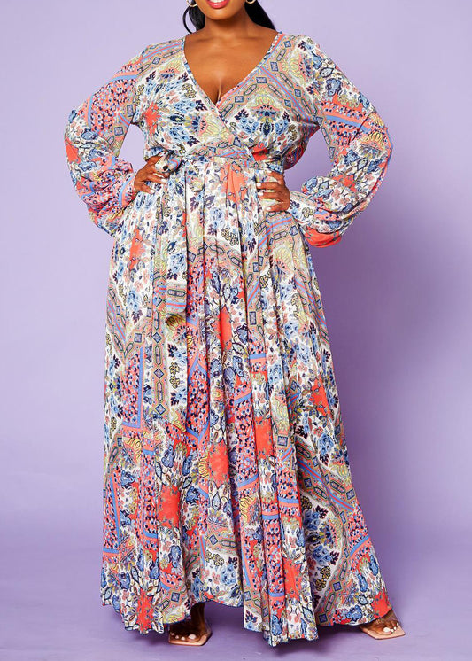 Hi Curvy Plus Size Women Unique Printed Flare Maxi Dress