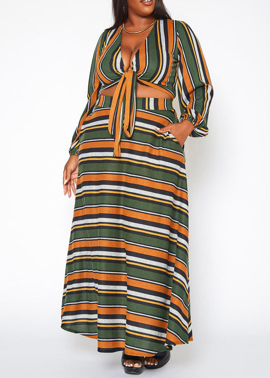Hi Curvy Plus Size Women Multi Striped Two Piece Set