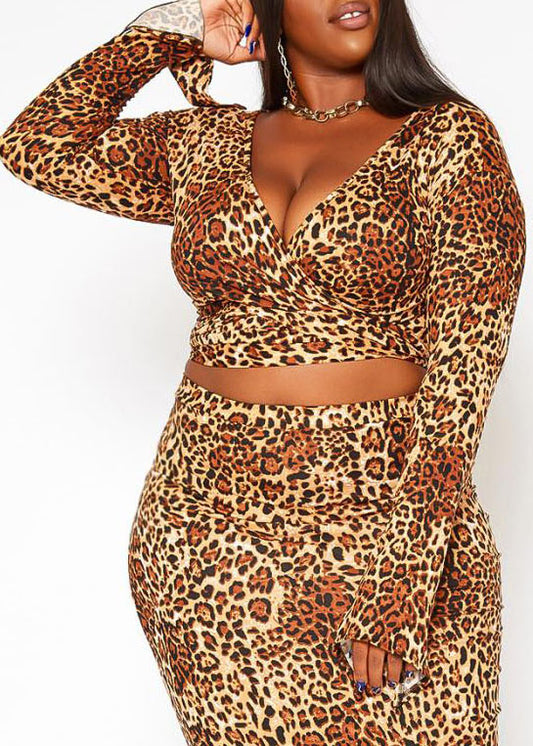 Hi Curvy Plus Size Leopard Print Wrap Crop Top