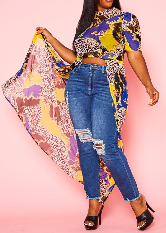 Hi Curvy Plus Size Women Animal Print Chiffon Hi-Low Shirts