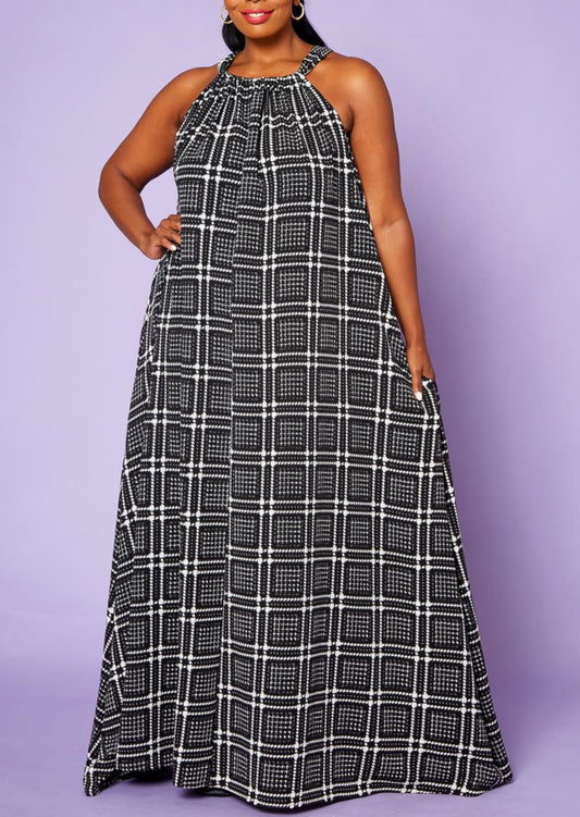 Hi Curvy Plus Size Black Square Flare Maxi Dress with Pockets