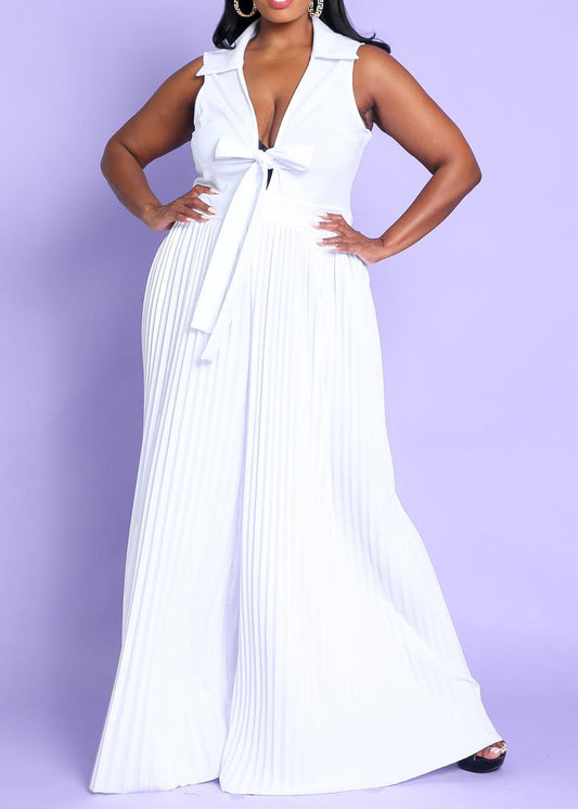 Hi Curvy Plus Size Women Sleeveless Pleated Wide Jumpsuit Made In USA