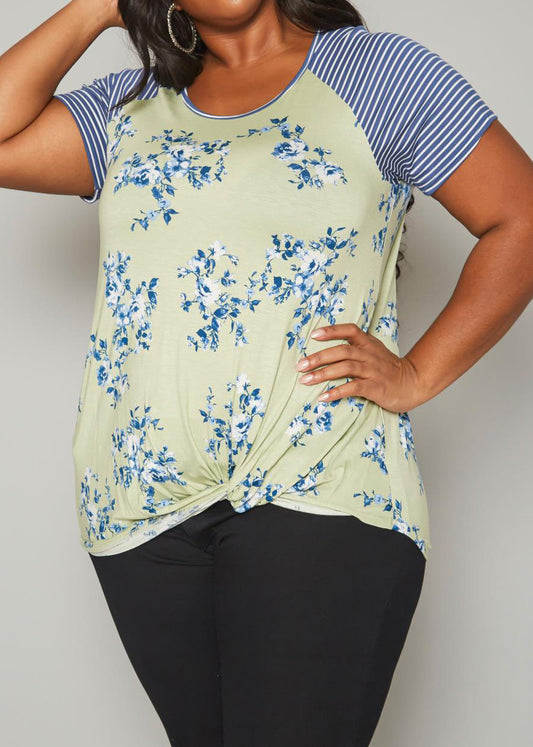 Hi Curvy Plus Size Back Cross Hem Design T Shirt