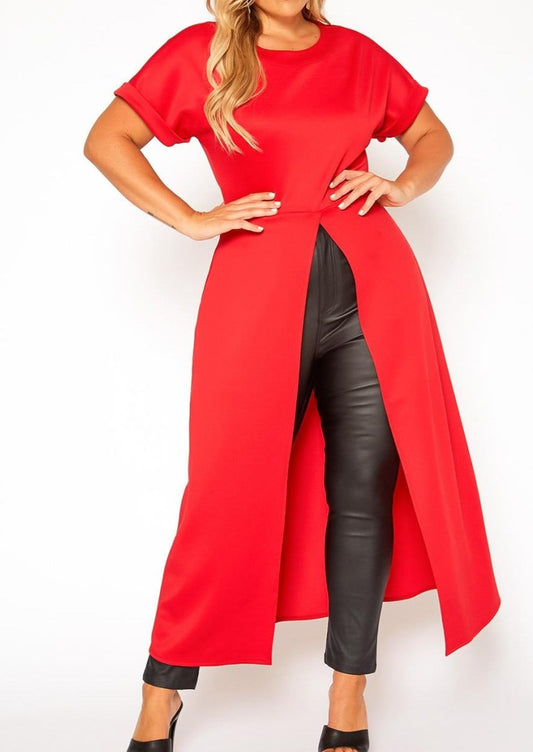 HI CURVY Plus Size Centered Split Hem Longline Tops