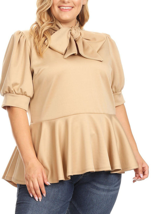 Hi Curvy Plus Size Women Puff Shoulder Sleeve Peplum Blouse
