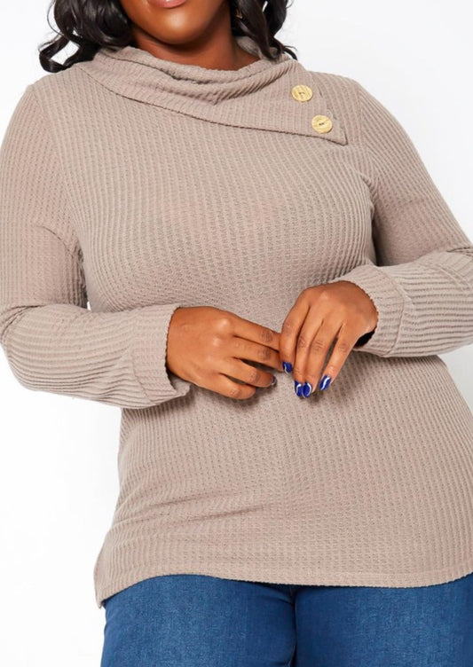 HI Curvy Plus Size Asymmetric Cowl Neck Sweater