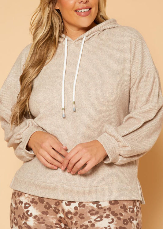 HI Curvy Plus Size Women Ribbed Knit Hooded Sweater